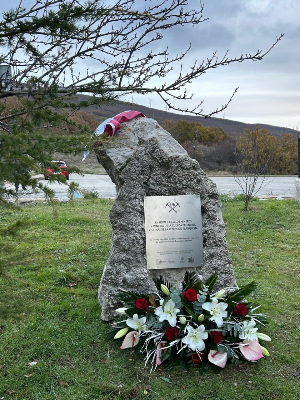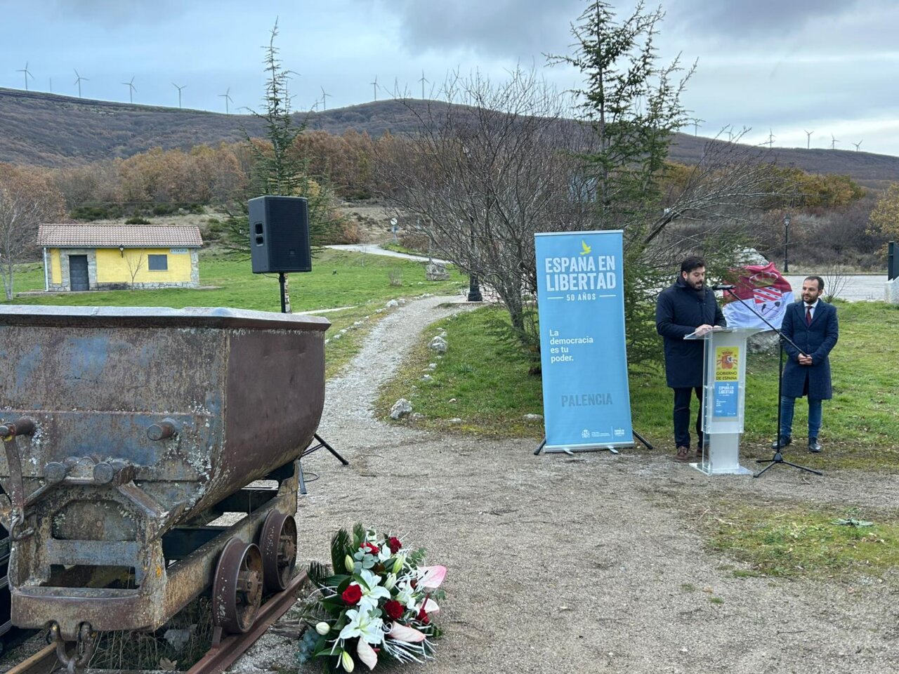 El acto ha estado dividido en dos partes. En primer lugar en el acceso de la mina visitable, con el descubrimiento de una placa y homenaje a los mineros de la cuenca minera palentina represaliados por el franquismo.