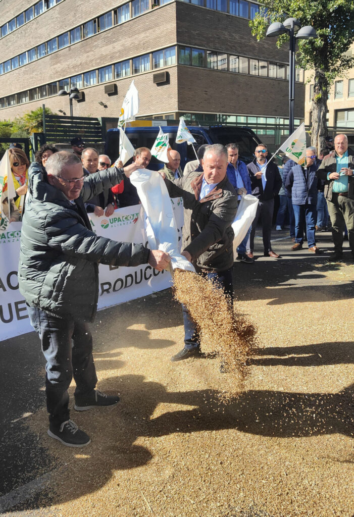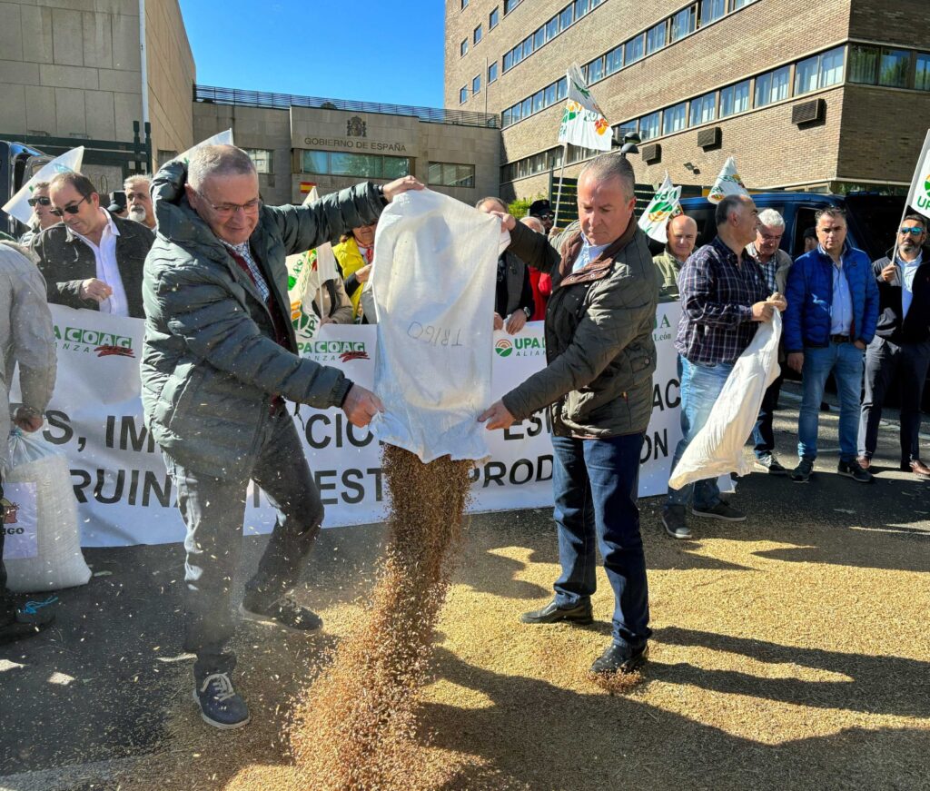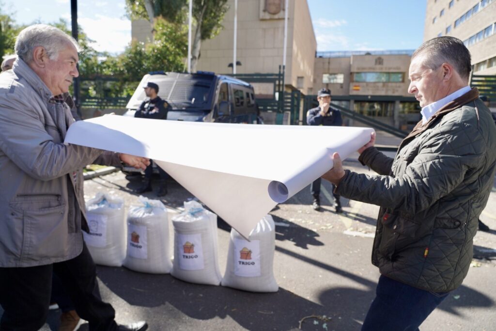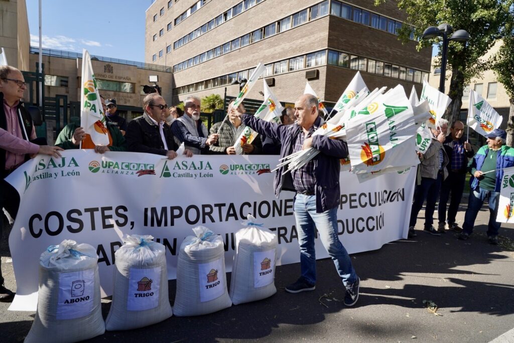 En una concentración llevada a cabo en unidad de acción frente a la Delegación de Gobierno, donde abrieron varios sacos de trigo que fue desperdigado por la calzada en forma de protesta, el presidente de Asaja Castilla y León, Donaciano Dujo, apuntó que hace dos años el cereal presentaba por estas fechas un precio de 360 euros la tonelada frente a los 200 de hoy, motivo por el que pidió que se pague un precio de 280 euros por tonelada, al ser el “precio que tiene que tener el cereal, porque los costes de producción antes eran de unos 500 euros y a partir de la guerra de Ucrania son de 750”. “La cosecha que este año hemos tenido apenas ha cubierto los gastos que tuvimos en la sementera del 2023 y, si no se cubren los gastos, no se puede sembrar”, dijo.