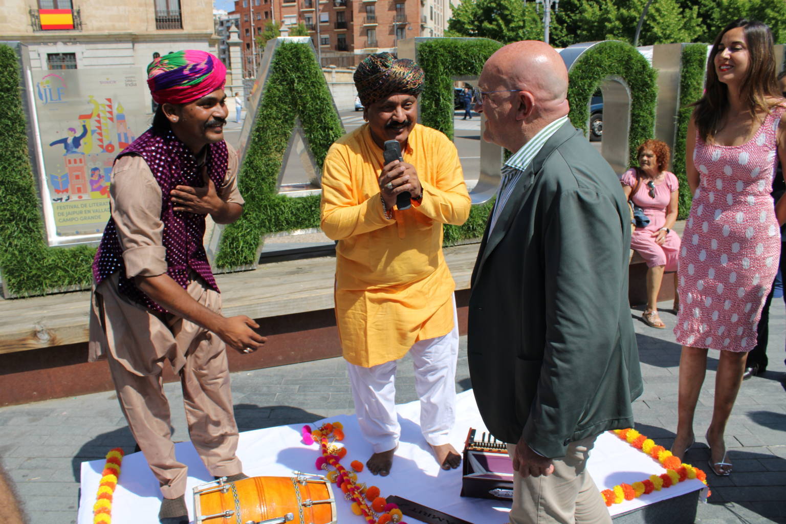 Jaipur Literature Festival reúne a escritores, pensadores, poetas y narradores en una celebración global de la literatura. Abarca temas tan diversos como la música y la poesía, la ficción, la gastronomía, la historia, la geopolítica, literatura de viajes y ciencias y matemáticas. Tras la inauguración de este jueves en IE University de Madrid, seguida de una bienvenida y primera sesión en Casa de la India, el estreno oficial se ha celebrado en la mañana de este viernes en el Parque Campo Grande de Valladolid, donde se ha podido ver una pequeña representación musical y de danza de la India, el país protagonista, junto a una demostración del folclore castellano con la dulzaina y el tambor. Una fusión de culturas muy distintas, pero desde hace un par de años ya hermandadas con Valladolid como lazo de unión.