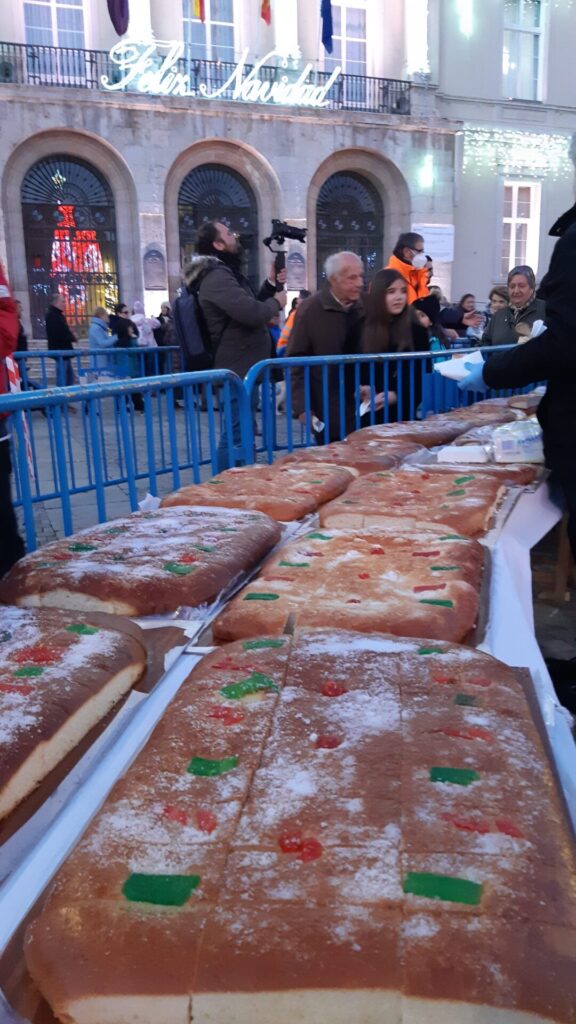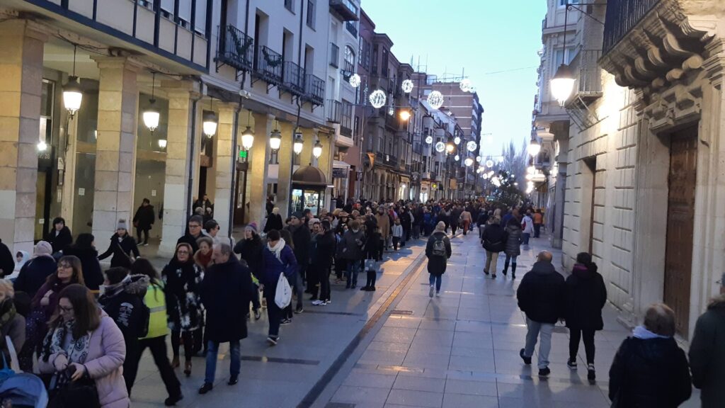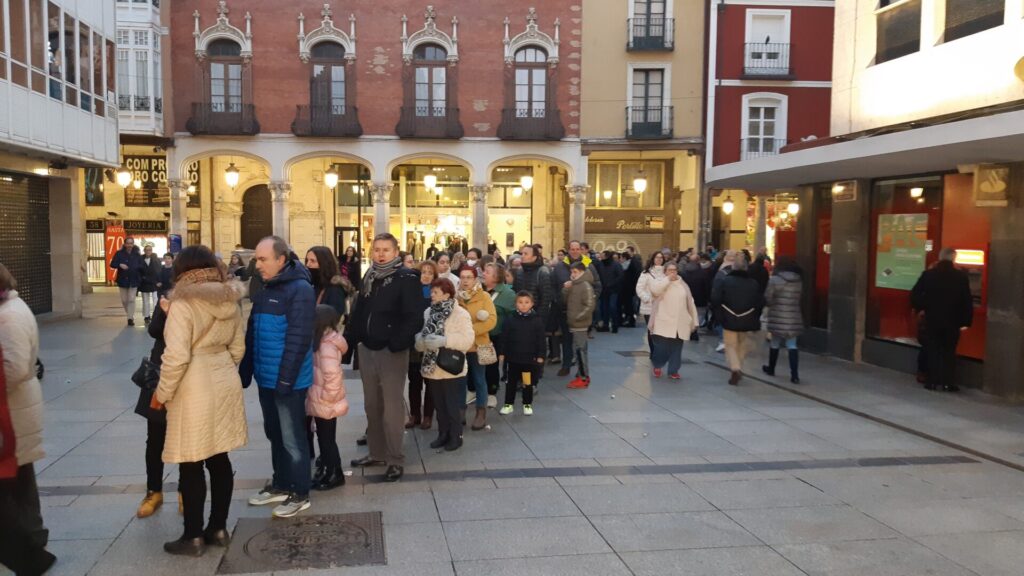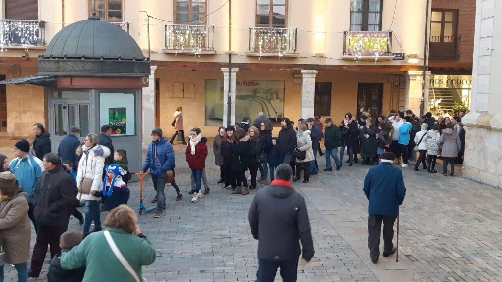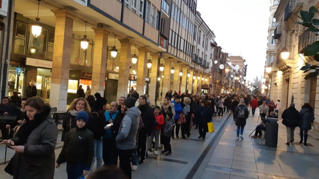 Porque hasta ese punto, a más de 300 metros del lugar donde se entregaban los cachos de roscón, tenían que acudir los palentinos para tomar la vez. “¿Pero no tenéis para comprarlo?”, cuestionaba una mujer a la muchedumbre mientras paseaba por la Calle Mayor. “¿Tú crees que merece la pena?”, le preguntaba un abuelo a su nieto ante la mirada del niño queriéndole decir ¿Tú qué crees, abuelo?. Porque todo sea dicho, las múltiples manos para repartir las raciones hicieron que la cola fuera bastante rápida y fluida.