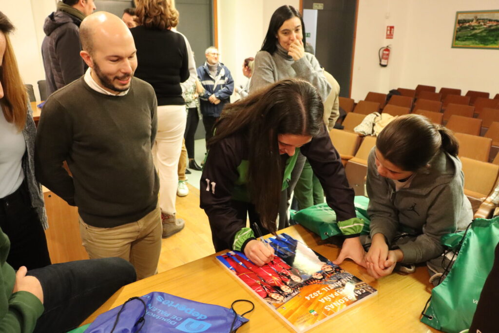 La Corporación municipal imprimió fotos de gran tamaño de las protagonistas para que las firmaran como recuerdo para la institución y asi como para el club, más algún que otro detalle para las chicas.