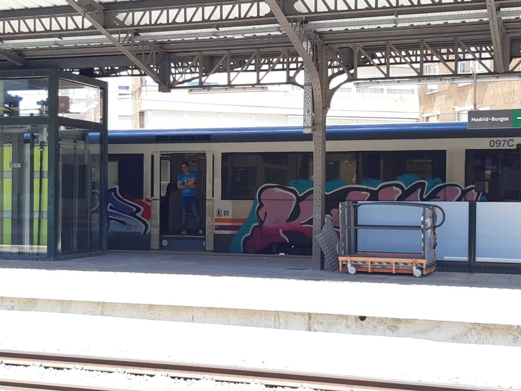 Problemas también en la estación de ferrocarril. Hasta con lo trenes diésel que, debido al fallo en las comunicaciones y los aparatos eléctricos, tampoco podían circular con seguridad. Así que a las puertas de la terminal de Palencia, los pasajeros de algunos trenes esperaban a la sombra.