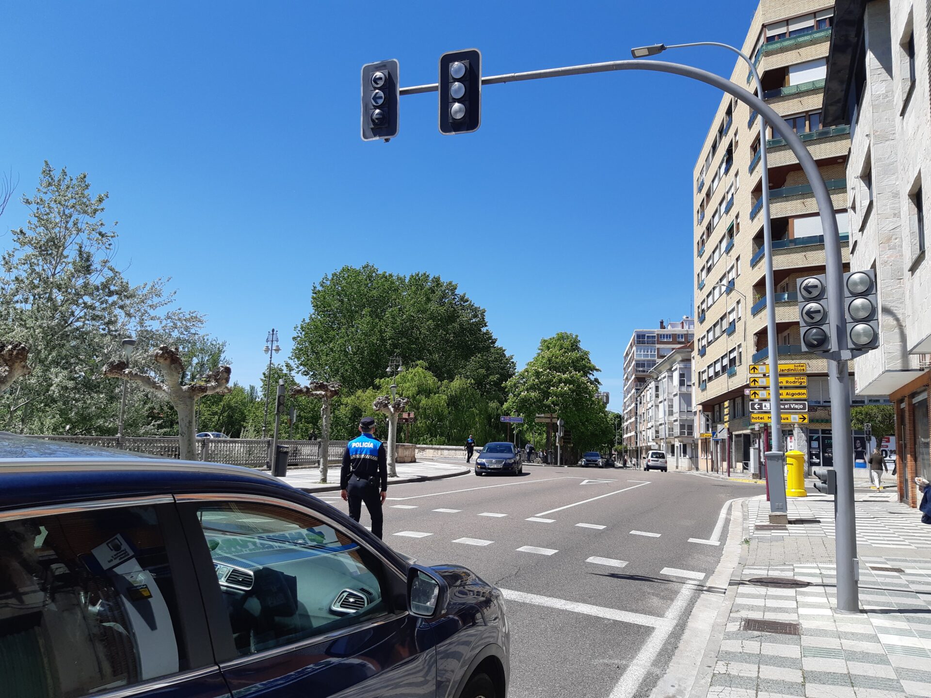 Agentes de la Policía Local, controlando el tráfico en Palencia. /Óscar Herrero