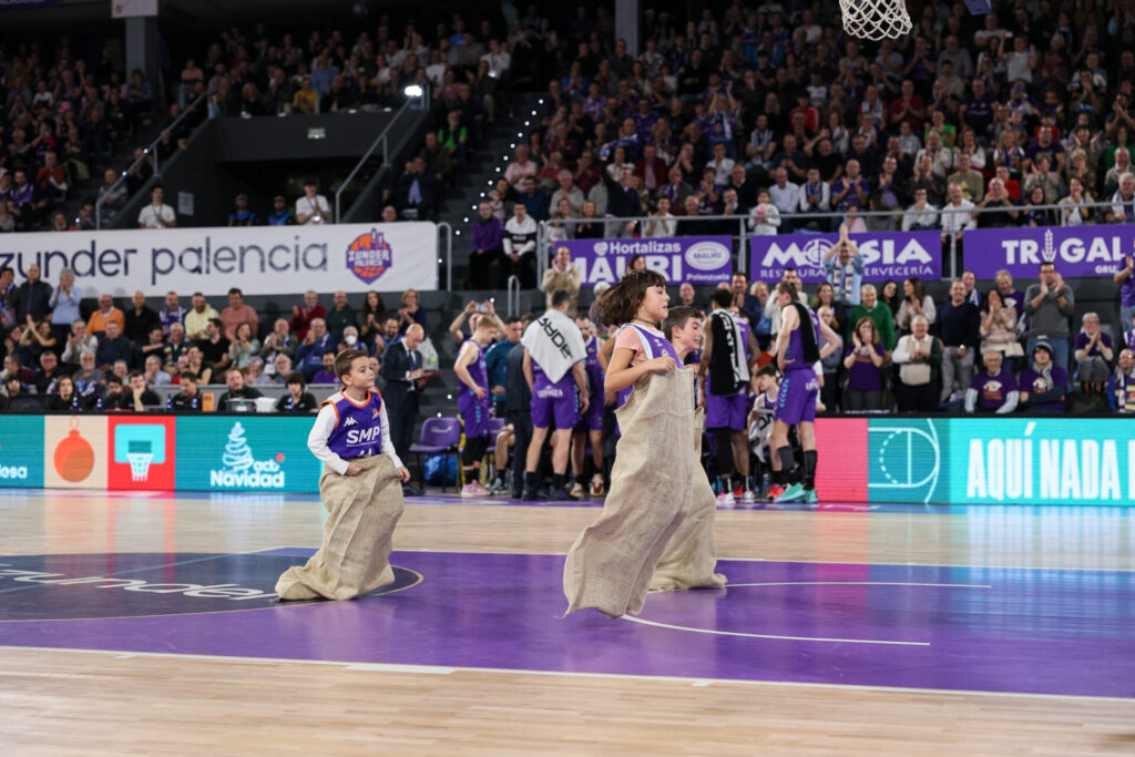 El ambiente era festivo, navideño. Con niños y niñas por doquier en las gradas del Pabellón Municipal de Deportes de Palencia. Por segundo año consecutivo, el club organizaba, a favor de Cruz Roja Palencia, una lluvia de peluches para los pequeños que más los necesitan. Una bonita iniciativa que llenó de muñecos de trapo todo el parqué del Municipal durante el tiempo de descanso.