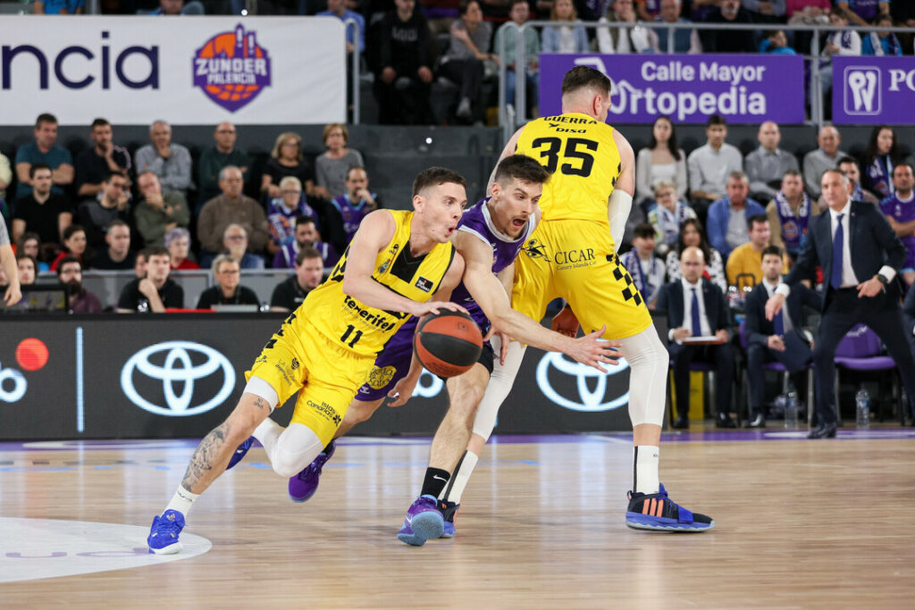 Lo intentaba con todo el Zunder en ataque. De tres, agua, por dentro… murallas canarias que curiosamente no hacían falta. Solo Cook parecía hacer la faltas en el Tenerife, y con tres se tuvo que ir al banco consumidos 18 minutos de juego. 28-38 tras tiros libres de Pasecnicks, que fue el encargado de dejar con una canasta tras asistencia de Frankamp la diferencia en ‘solo’ 8 puntos. Razón para que Txus Vidorreta pidiera su segundo tiempo muerto del partido. No le gustaba cómo estaba jugando, especialmente en ataque, el cuadro canario ante una defensa palentina que le dejó en solo 11 puntos y un parcial de 15-11.